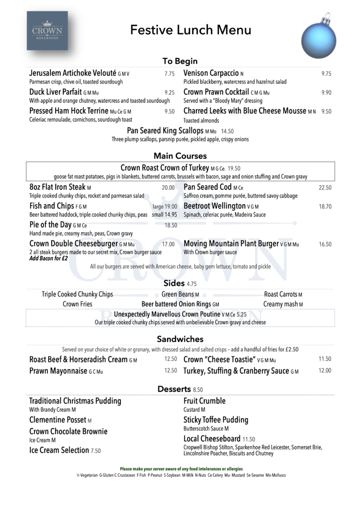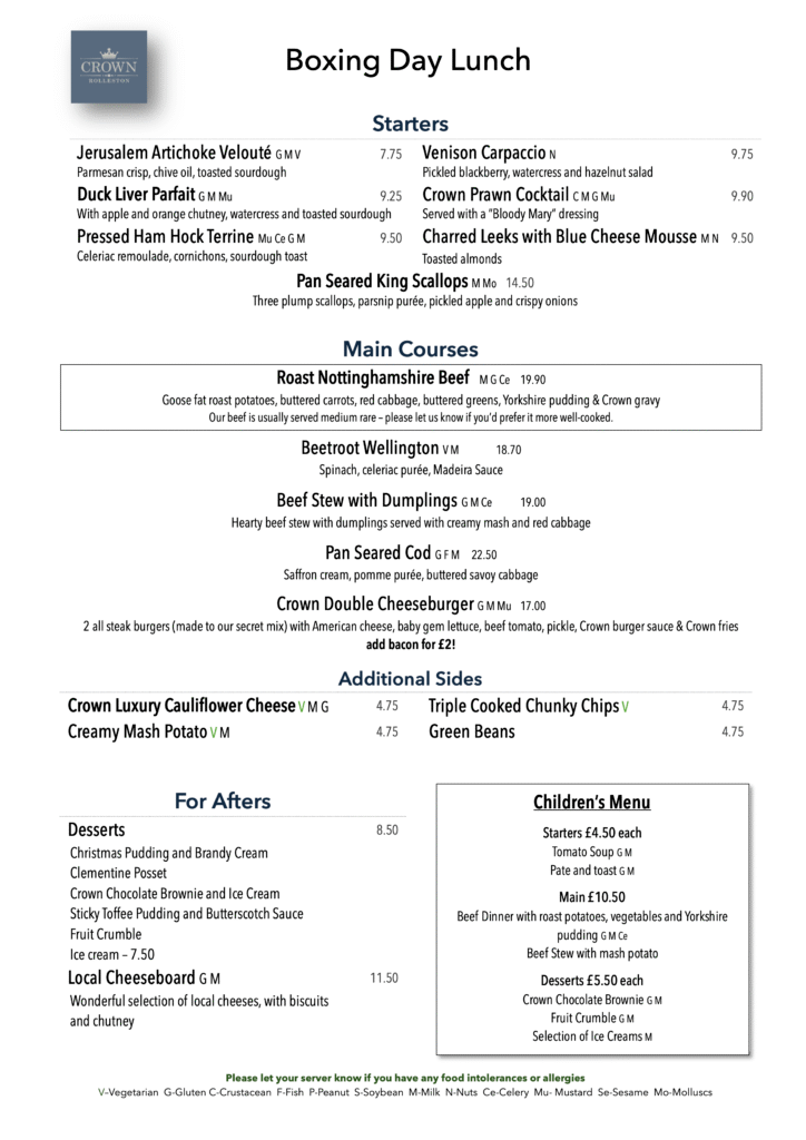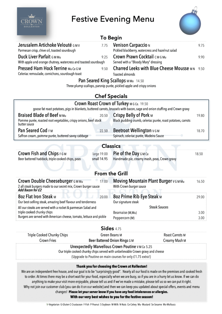 Take a look at Our Menus Our menus change regularly so look out for specials in the restaurant! Evening menu Lunch Menu Sunday Menu Children's Steak Night Christmas Day Boxing Day New Year's Eve Return To Top Return To Top Return To Top Return To Top Return To Top Return To Top Return To Top Return To Top