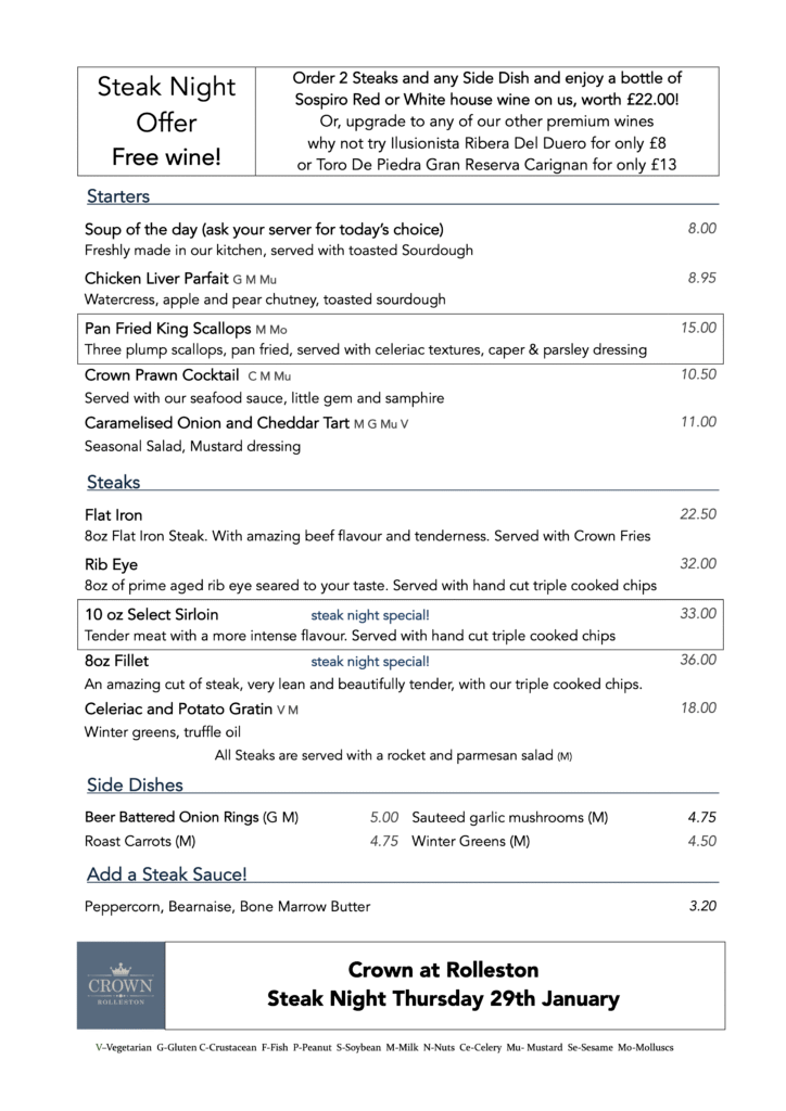 Take a look at Our Menus Our menus change regularly so look out for specials in the restaurant! Evening menu Sunday Menu Children's Evening Special Selection Lunch Menu Steak Night Valentines Return To Top Return To Top Return To Top Return To Top Return To Top Return To Top Return To Top